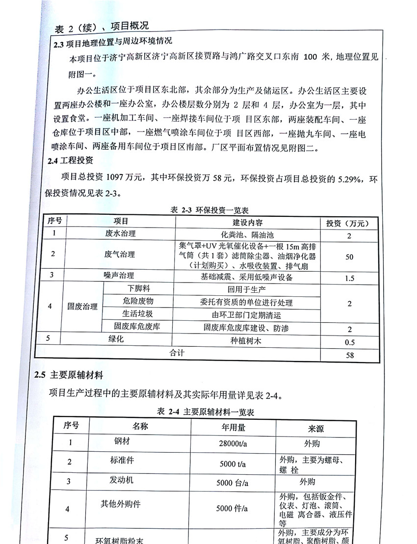 濟寧市福瑞得機械有限公司年產(chǎn)2600臺小型機械及12000噸機械配件加工項目(廢氣、廢水)竣