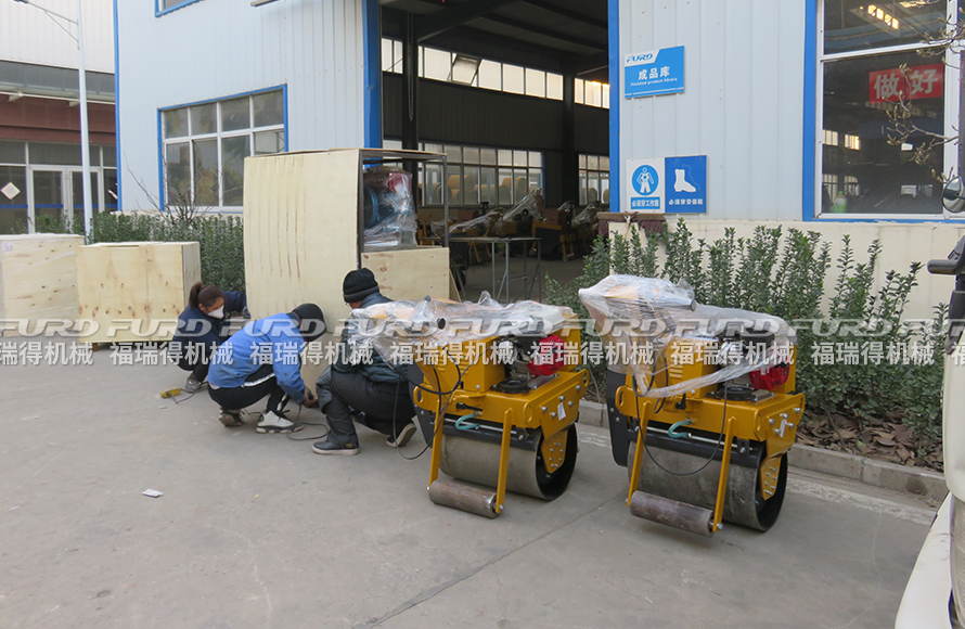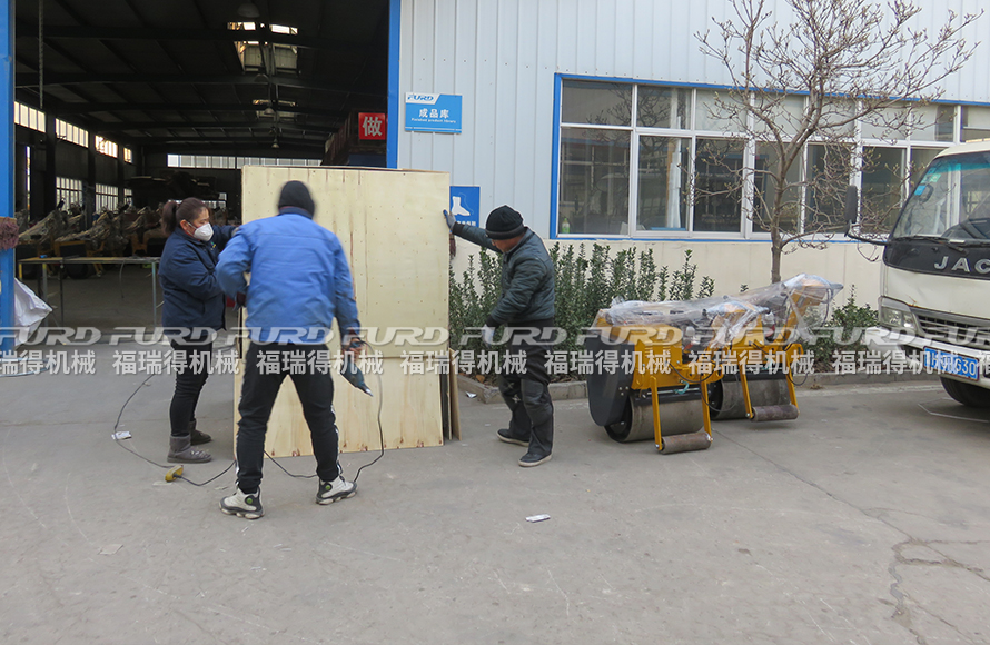 福瑞得5臺(tái)小型路面機(jī)械打包裝箱出口東南亞
