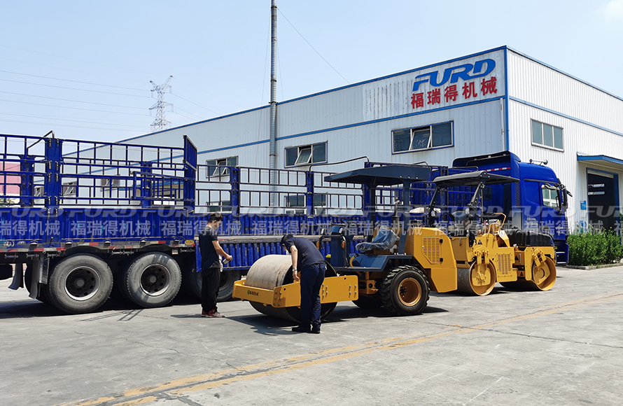 福瑞得2臺座駕壓路機裝車發(fā)往青海