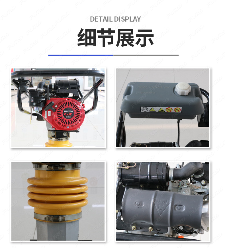 用于公路、市政、電信、煤氣、供水、鐵路等部門對(duì)工程基礎(chǔ)和溝槽回填土的夯實(shí)。
