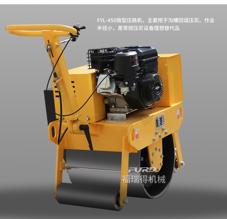 主要用于溝渠回填壓實(shí),F(xiàn)YL-450壓路機(jī)可以替代平板夯。