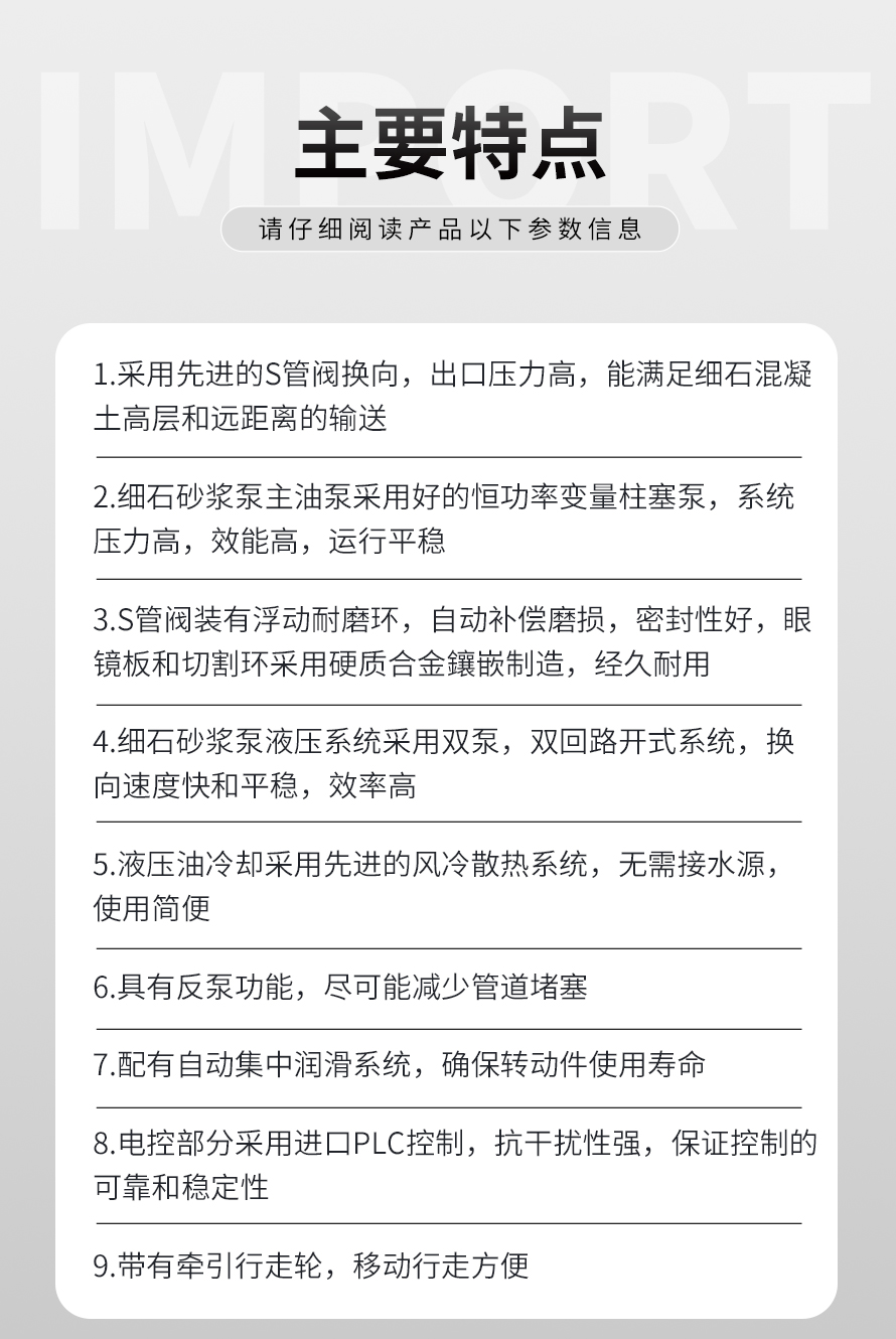 25型二次構(gòu)造柱專用輸送泵是一種復合泵送要求的混凝土泵,通過水平或垂直安裝的管道,連續(xù)輸送到澆注現(xiàn)場的細石混凝土輸送設(shè)備。 廣泛應用于二次構(gòu)造柱填充、地暖工程、屋面、高層建筑的墻、水庫、水電站、港口、碼頭、基礎(chǔ)處理 軟弱地基 加固注漿 隧