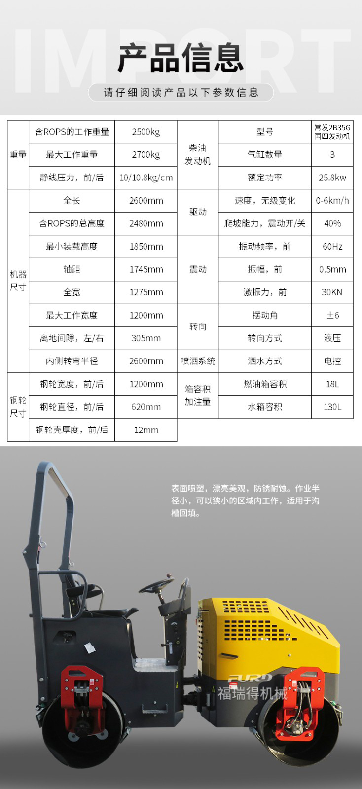 FYL-1100  2.5噸全液壓壓路機