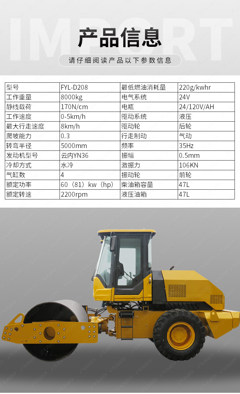 FYL-D208 8噸重型單鋼輪壓路機(jī)